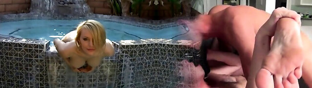 Young blonde Sabrina Light-haired is swimming in the pool and making enjoy with her boyfriend