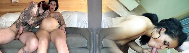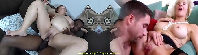 Cute buxomy pregnant teen gets fucked in hardcore threesome l