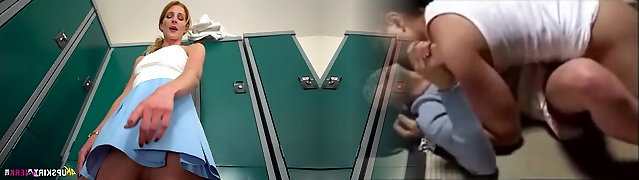 Some nice and cock hardening upskirt solo show by whorish gal in locker room
