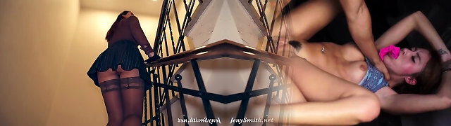 Jeny Smith creeping to the office building. Naked in elevator and on stairs