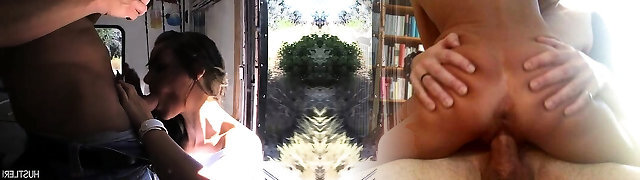 Pretty blonde licks black nuts and guzzles huge big trunk outdoor