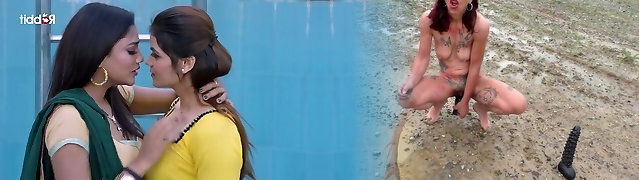 Wonderful big breasted ash-blonde and curvy brunette hotties love doggy fuck