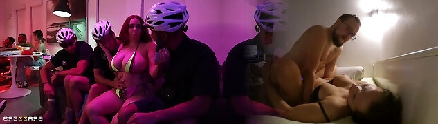 Threesome with strangers is the favourite action for this busty brown-haired