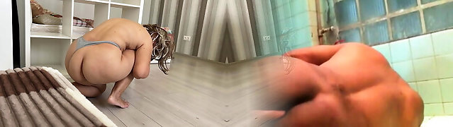 Stepsister Noticed How Her Stepbrother Jacks Off His Fat Cock In The Bathroom, She Is Shocked, He Has A Very Big Stiffy, She Is Excited, This Girl Has Big Natural Tits, She Is Naked, She Likes To Jerk A Big Massive Spear And See How The Guy Cums 5 Min