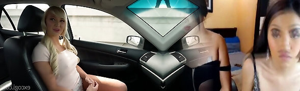 Blonde beauty Paisley blows meatpipe in a car and gets fucked doggy style