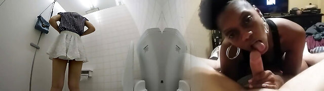 Cute dark-hued bitch Daizy Cooper found two glory fuckholes in the toilet of the bar.