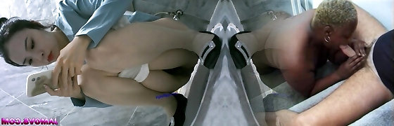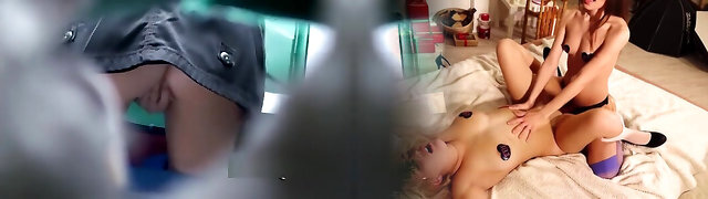 Toilet 3some with head in the toilet while flushing