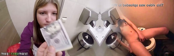 Messy chick is fucking for money in the public restroom