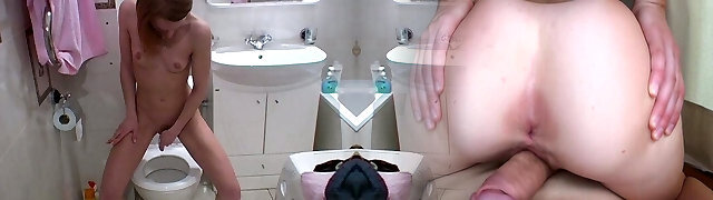 Toilet Creampie Dripping From Both Crevasses And Peeing After Orgy