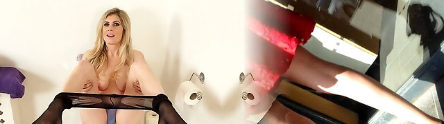 English milf Ashleigh gets naughty on the rest room