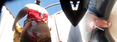 Pussy of a white female filmed macro shot from behind in the toilet