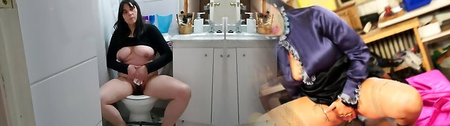 Urinate Fetish Spy Toilet Big Oiled Tits Monstrous Ass Female Pee Hole Close Up Wet Pussy
