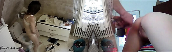 Mom was in the toilet when her steson was taking a shower. Mommy and son anal