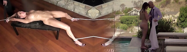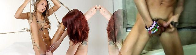Roped beauty Clover gets her tight pussy fingered and played by her GF