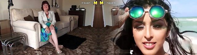 Grandma porn starlet Sandora uses a giant dildo, then has lesbian sex.