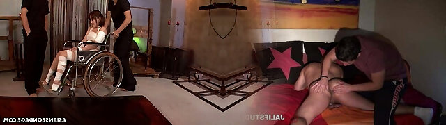 Japanese girl in the wheelchair Nene Masaki takes part in crazy group sex