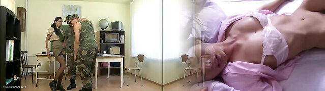 Military chicks have a three way with their commanding officer