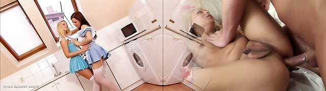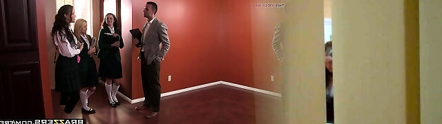 naughty schoolgirls lisa and ride tutor's huge hard pecker with assholes