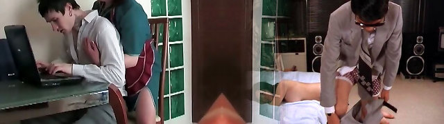 Uniformed asian rubbing