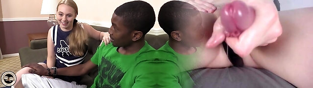 Gay-for-pay haired black cheerleader is fond of sucking massive ebony dick