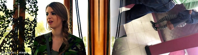 Hardcore fucking in the army with busty cougar Rebecca Volpetti