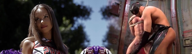 Ultra-kinky cheerleader Liza Rowe drops her uniform for a black bone