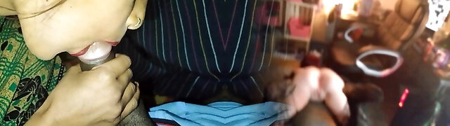 Mature maid sucks on boy man-meat