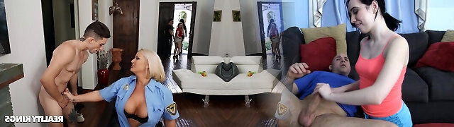 Spectacular Brunette Teen Is Grabbing A Rock Hard Police Piston