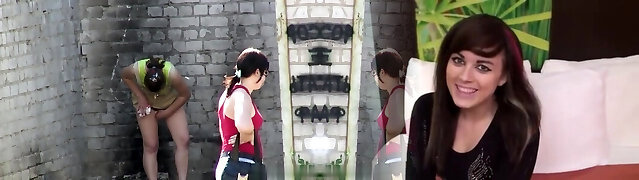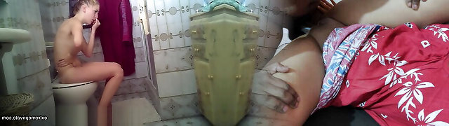 Women pissing in a public bathroom caught on spy cams