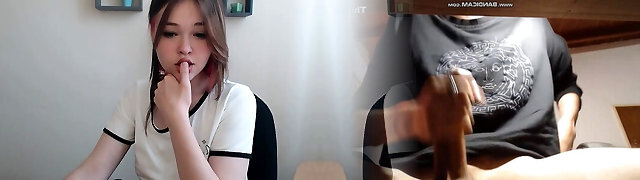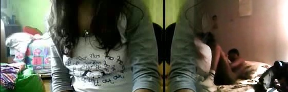 Lewd web cam bitch is showing off her private parts with her neighbor in the room