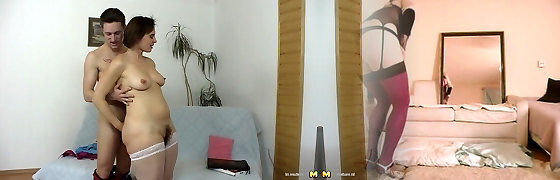 Amateur retro video with a mind-blowing brunette wife in stockings