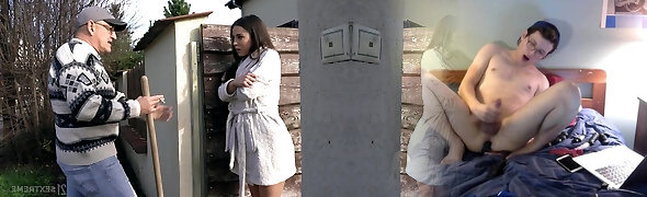 Sex-appeal brunette Anastasia Brokelyn gets intimate with old man