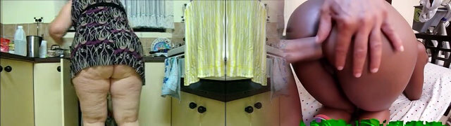 Bootylicious flabby bitch poses on web cam in the kitchen