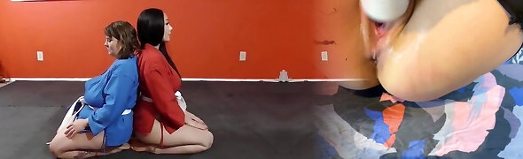 Lesbian Strapon Fucking for Dummy of Wrestling Fight