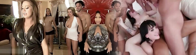 Sexy women oil wrestling with the guys in 4some mansion